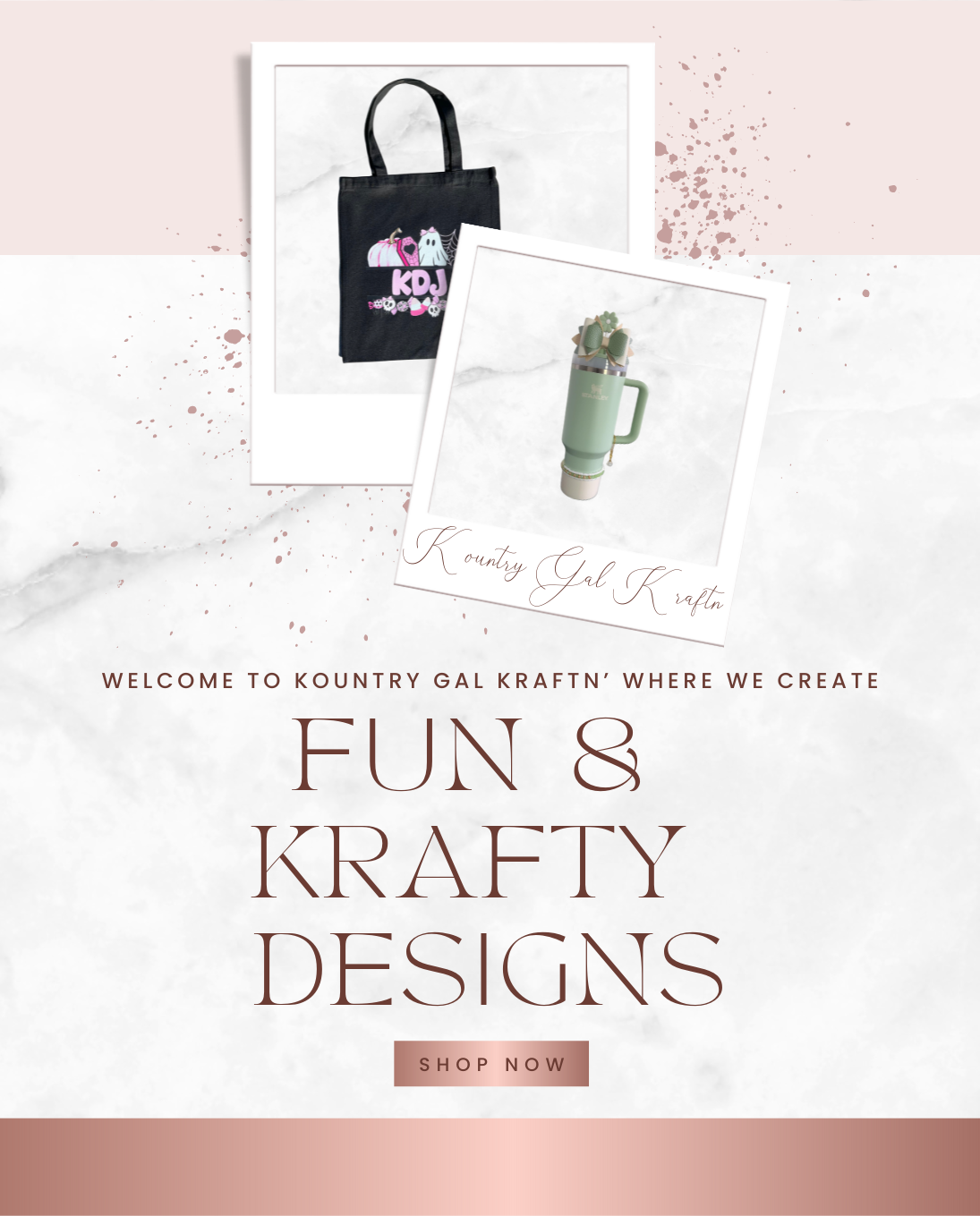 Welcome to Kountry Gal Kraftn', your go-to destination for unique crafting supplies and custom creations. Our products, including handmade tumblers, t-shirts, and cups, are crafted with love and attention to detail.
